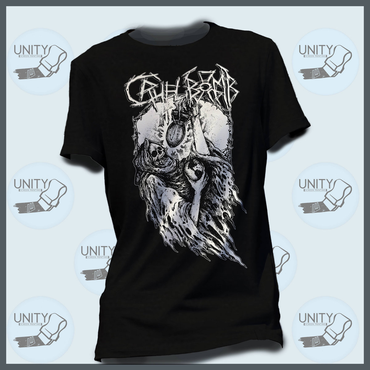 Next level 100% cotton T-shirt featuring the "Atomic Reaper" and the Cruel Bomb logo.