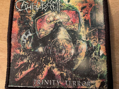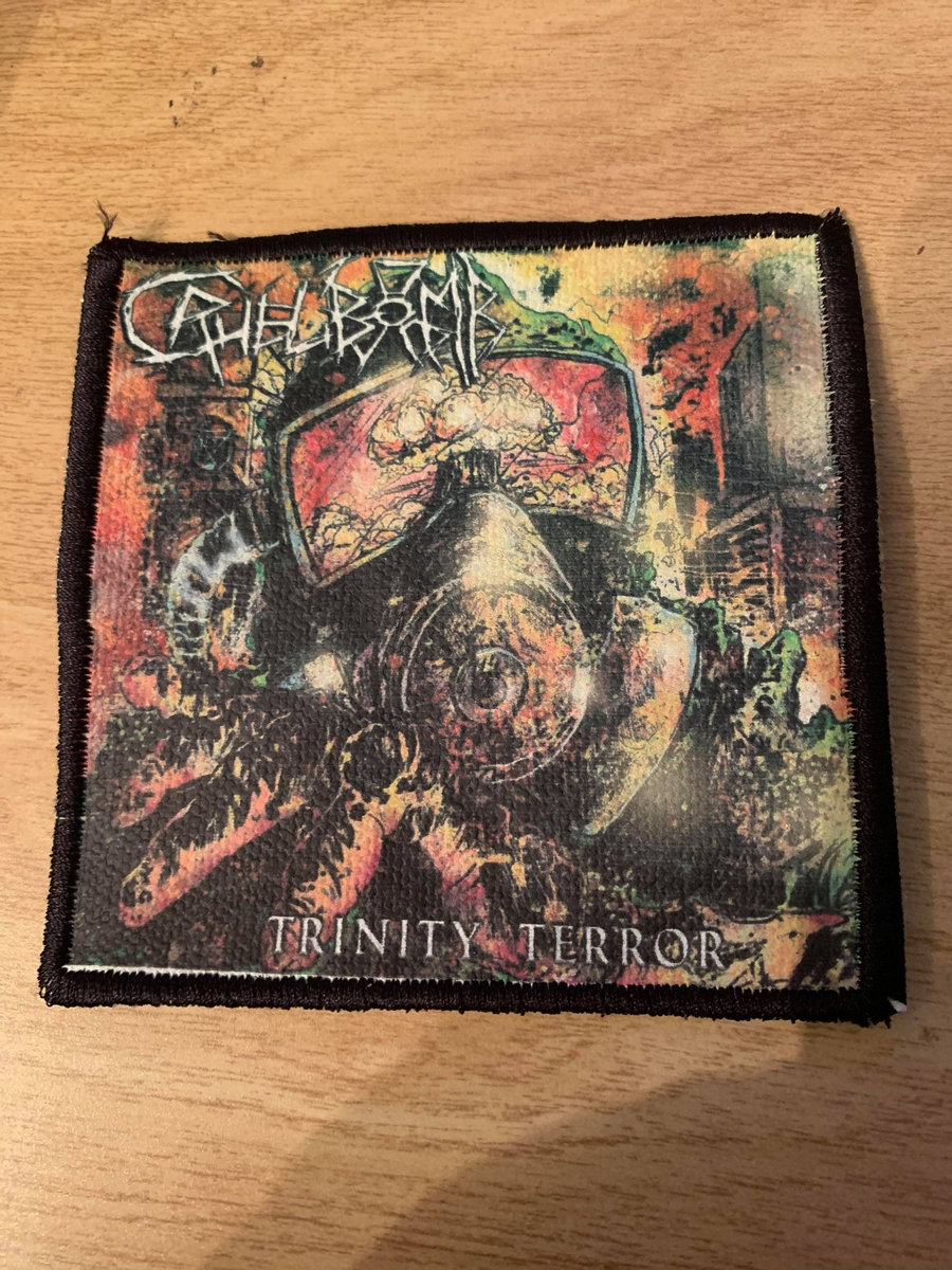 Embroidered patch featuring our "Trinity Terror "cover 3 1/2 x 3 1/2